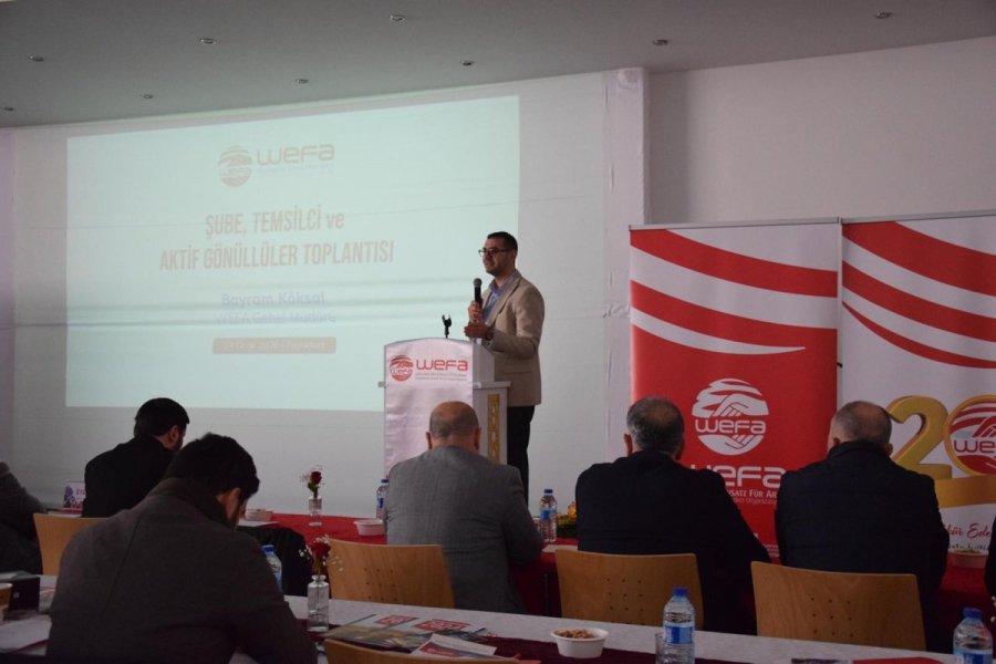 WEFA’nın “Şube, Temsilci ve Aktif Gönüllüler Toplantısı” 24 Ocak 2026 tarihinde Almanya’nın Frankfurt kentinde geniş bir katılımla düzenlendi. WEFA’nın farklı ülkelerde görev yapan şube ve temsilcileri ile aktif gönüllüleri bir araya getiren toplantı; kurum içi istişare, tecrübe paylaşımı ve gönüllülük bilincinin güçlendirilmesi açısından önemli bir buluşma niteliği taşıdı. Gün boyu süren programda, WEFA’nın insani yardım faaliyetleri, kurumsal yapısı, eğitim vizyonu ve gönüllülük çalışmaları kapsamlı şekilde ele alındı. Almanya’nın farklı şehirlerinden, Avusturya, Belçika, Hollanda, İsviçre ve Türkiye’den katılımın sağlandığı toplantıda yoğun içeriğin yanı sıra Ramazan Kampanyası da hakkında da bilgiler aktarıldı.